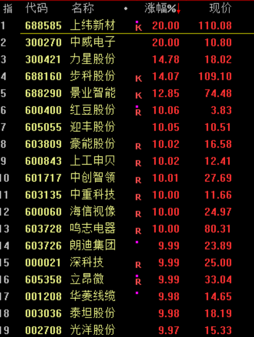 机器人概念股持续走强,上纬新材、豪能股份(维权)、中重科技等涨停。