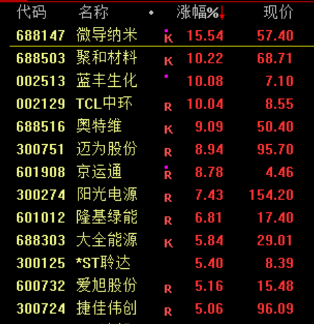 光伏、固态电池等新能源板块拉升金策宝,TCL中环、恩捷股份等涨停。